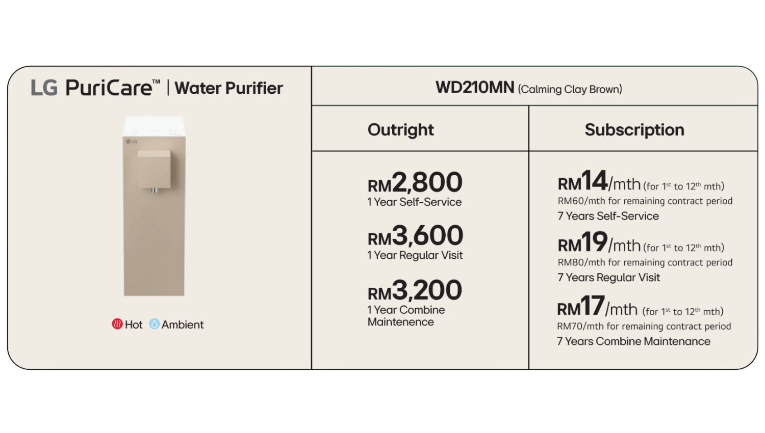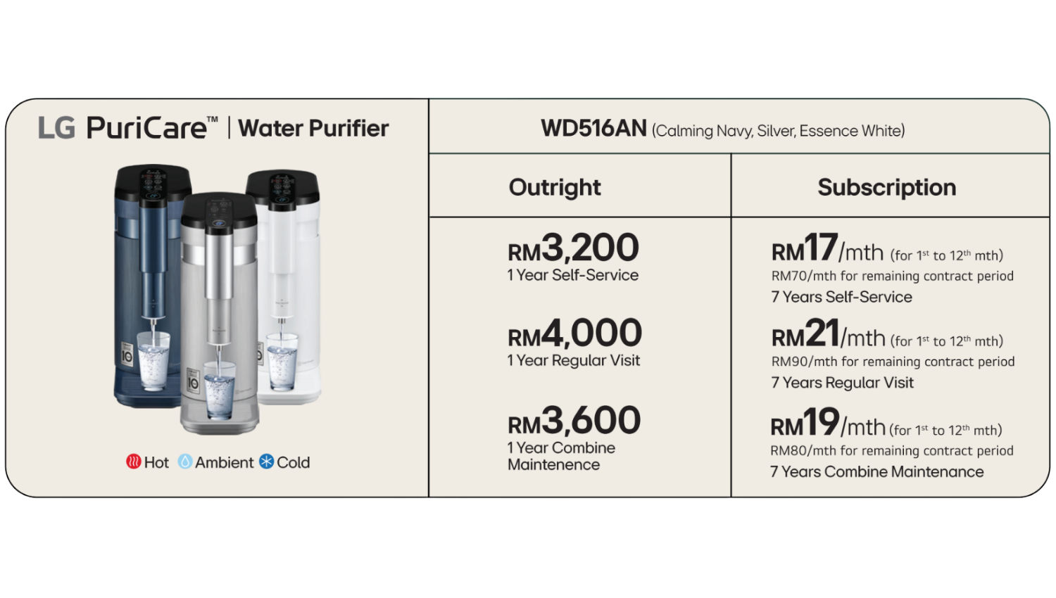 Subscribe now and enjoy up to 77% OFF for the first 12 months, that’s a saving of RM636 in your pocket! From as low as RM14/month, enjoy pure, clean water every single day with zero upfront cost and zero hassle.